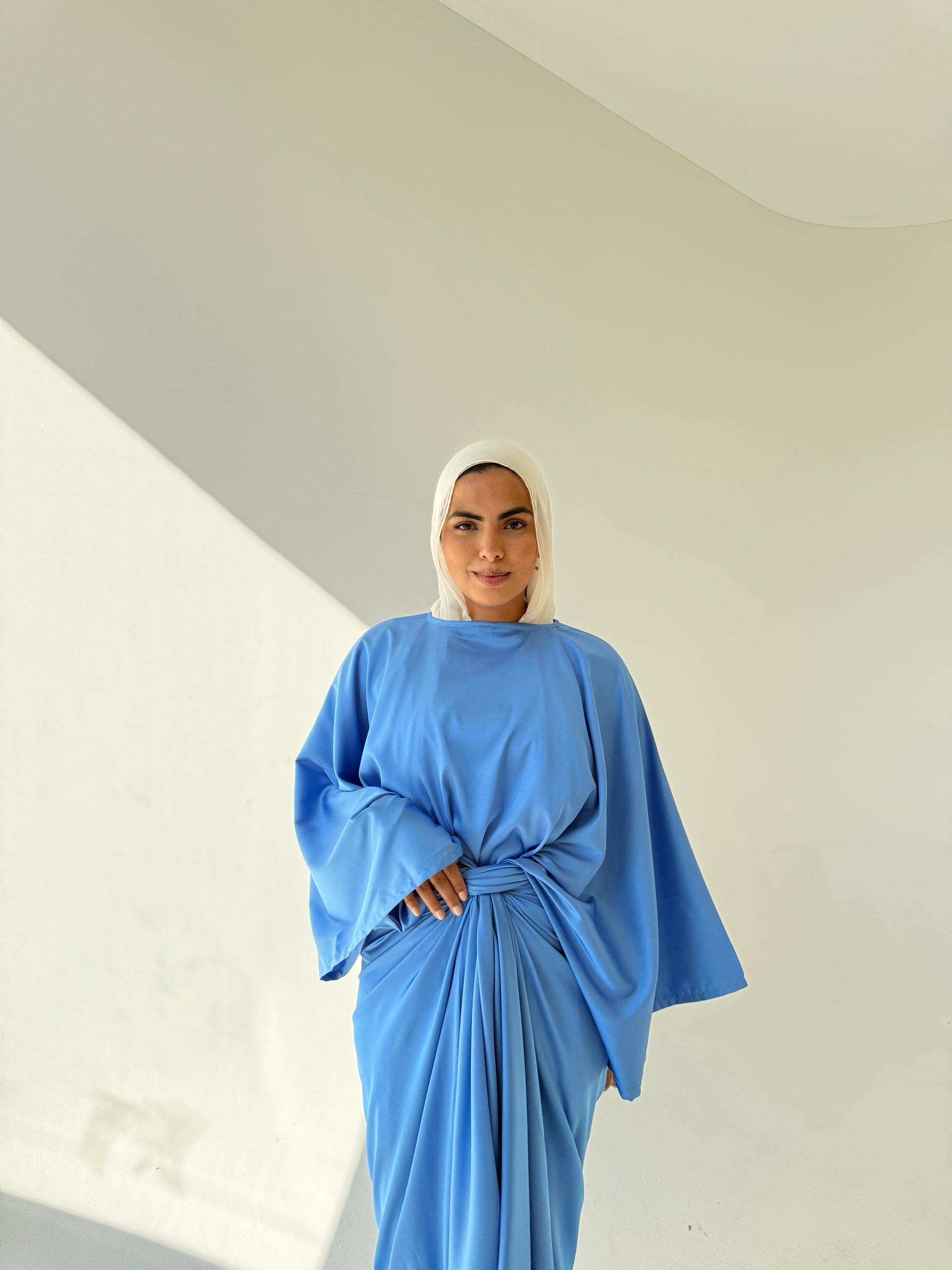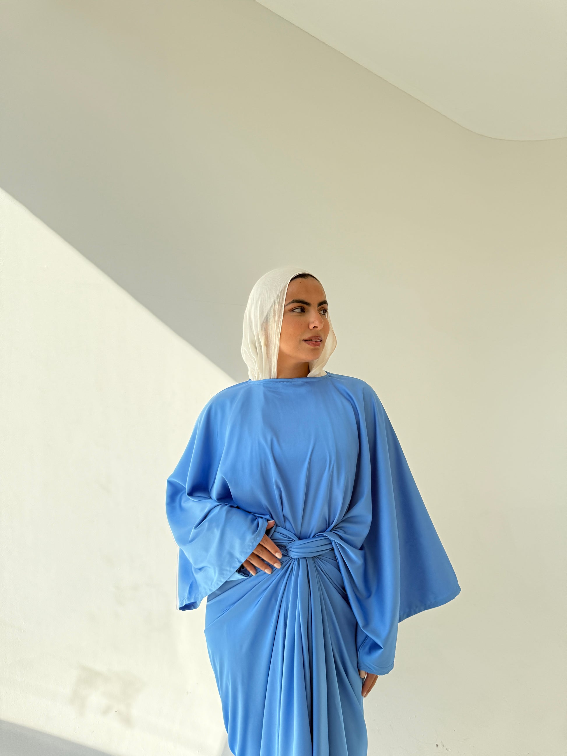 DESCRIPTION: A loose-fit dress with a waist tie for adjustable shape. Simple, clean design that’s easy to wear and style.