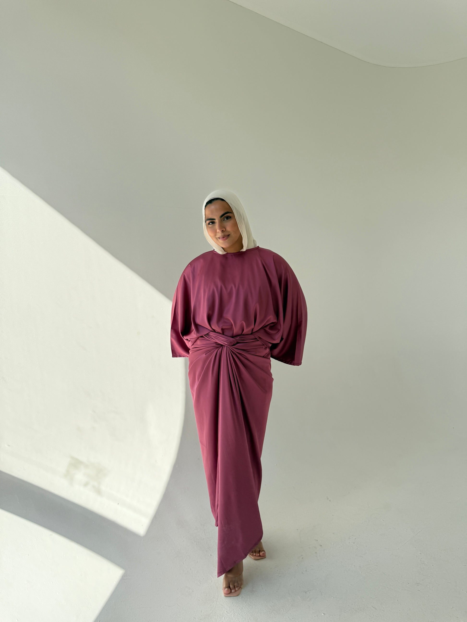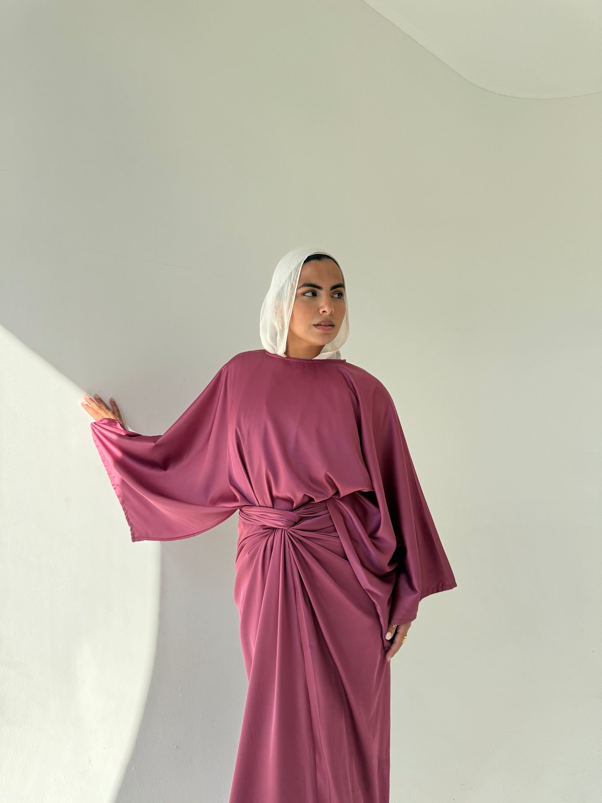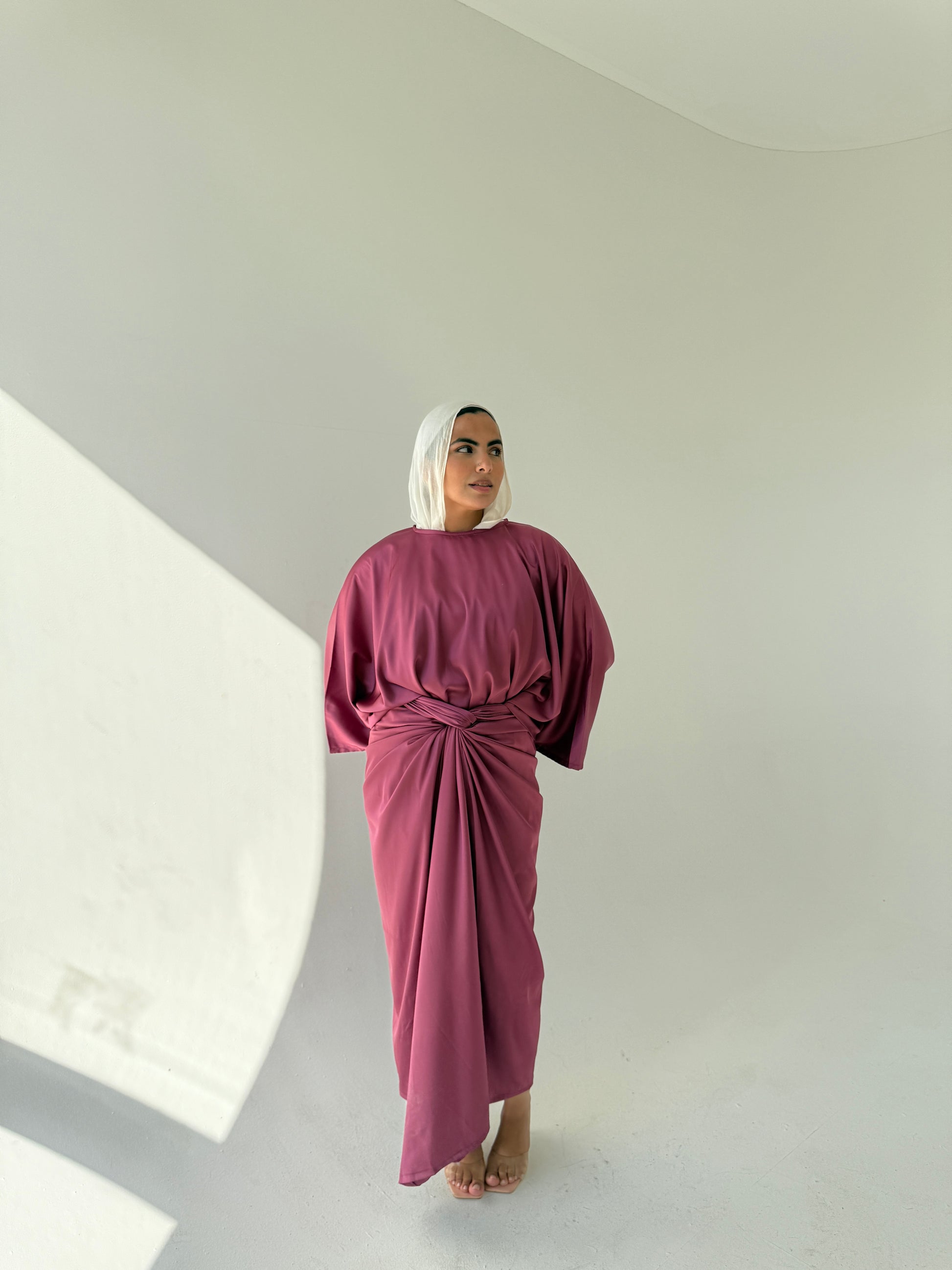 DESCRIPTION: A loose-fit dress with a waist tie for adjustable shape. Simple, clean design that’s easy to wear and style.
